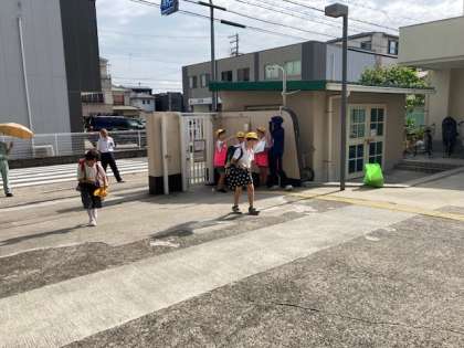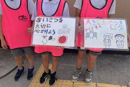 今週は天気のいい日が続いています。朝からすでに熱いですが、しっかりあいさつ運動に取り組む代表委員会メンバーです。ごくろうさまです。