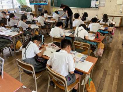 大阪のまちにある古い建物について調べる授業。調べていくと100年を超える建物もあり、どうして今まで残されているのか考えています。