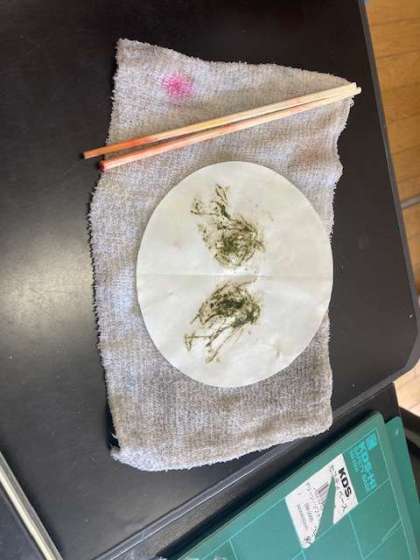 植物の葉に養分が含まれているか調べる実験をしています。
