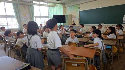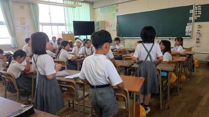 今日は月末なので、席替えをするクラスも多いようです。3年2組では、席替え後に来月の目標を一人一人がみんなの前で発表します。