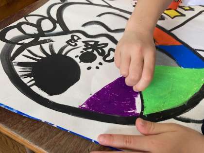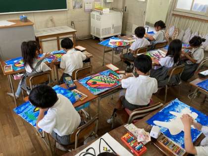 子どもたちによると、色を塗るコツはクレパスで紙をこするようなイメージだそうです。