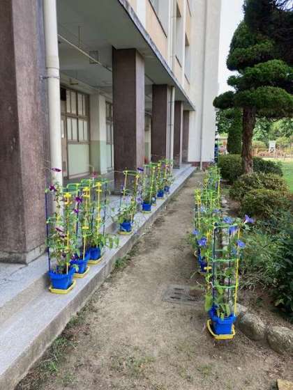 今週、一年生が朝顔を引越しさせました。