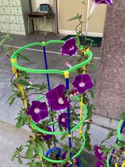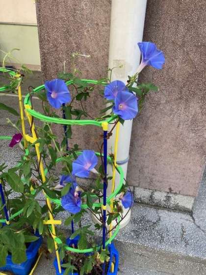 朝顔も強い日差しは苦手なようで、場所を変えてあげると元気に花を咲かせています。
