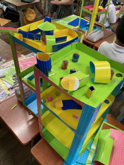 図画工作科で作っている立体作品「コロコロガーレ」