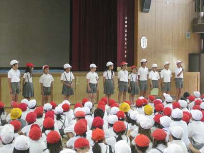 12名の代表委員はこの日、1年間のめあてや「こんな学校にしたい」という思いをのべていました。みんなしっかりと覚え、堂々としていて立派でした。