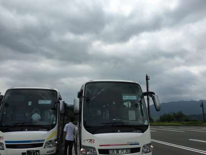 道の駅まほろばでトイレ休憩です。バスに酔う様子もなく、皆元気です!