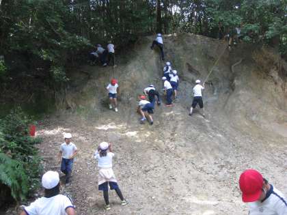 みかん狩りをした後は、手作りアスレチックやそりすべりをしたり、探検の森に冒険に出かけたりしました。