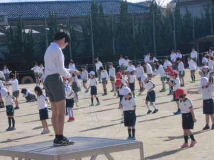 1月16日(月)から1月27日(金)までの月曜、水曜、金曜の20分休憩に運動場で全学年の児童が一斉になわとびの練習をします。