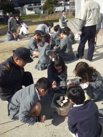 炭にうまく火がつかずに、苦労しましたが、自分で焼いたお餅の味は格別でした。