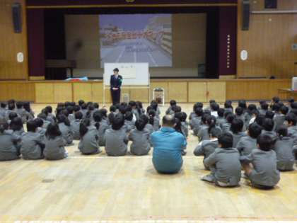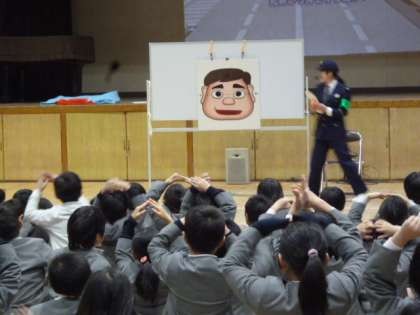 2月17日に大阪府警察本部生活安全指導班の方に来ていただいて誘拐被害防止教室を行いました。