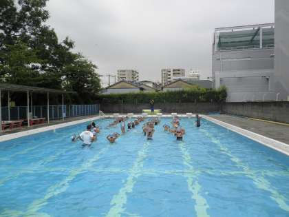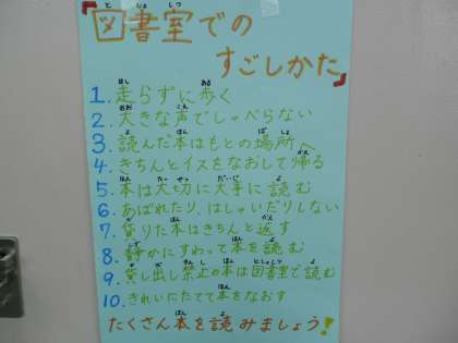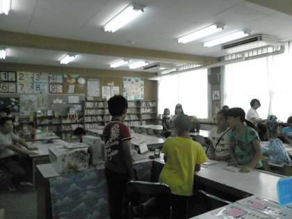 夏休みのプール開放と図書館開放の様子です。どちらもたくさんの児童が元気に参加しています。図書室では、委員会の児童が「図書室での過ごし方」ポスターを作っていました。ルールを守って長い夏休みを一日一日大切に、そして安全に、健康に過ごしてほしいと思います。