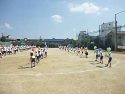 いよいよ、今週末に運動会です。3.4年生合同でダンスの練習を暑い中頑張ってきました。今日は初めてポンポンを持って踊ってみました。ポンポンを持つと、一段と華やかで素敵なダンスになりました。本番が今から楽しみです。