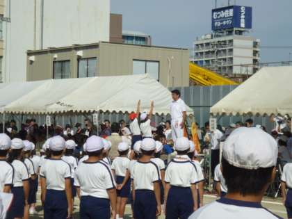 10月1日(日)爽やかな秋空のもとに、運動会が行われました。体育館工事中で、やや狭い運動場でしたが、入場行進・開会式・ラジオ体操など、児童はやる気をみなぎらせ、頑張っていました。今年のスローガンは、「あきらめず最高の笑顔になる運動会にしよう!」です。運動会の様子を写真で紹介していこうと思います。