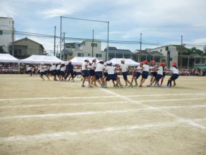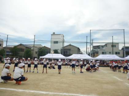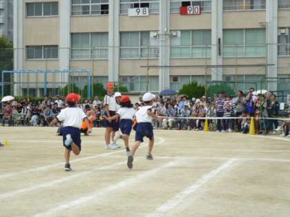 4年「力を合わせて」2年「ゴールめざして」1年「玉入れ エビカニ合戦」