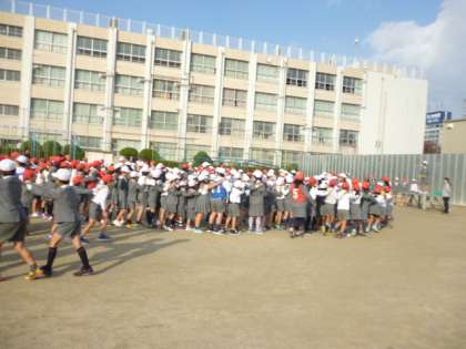 11月9日(木)たてわり班集会がありました。1〜6年生の児童が混ざったたてわりの班での遊びです。じゃんけん列車ゲームでまずは班の中でのじゃんけん、その後は別の班とのじゃんけんで長い列ができていました。よいお天気のもと、運動場で集会ができてよかったです。