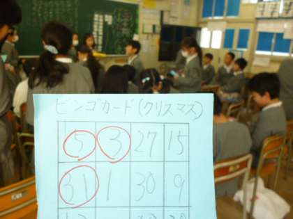 2学期がもうすぐ終わるということで、12月23日(金)はお楽しみ会を開くクラスがありました。ビンゴゲームやブラックボックス、○○名人発表会、やりなげ、お笑い、ボーリング等、楽しそうな出し物がいっぱいで盛り上がっていました。