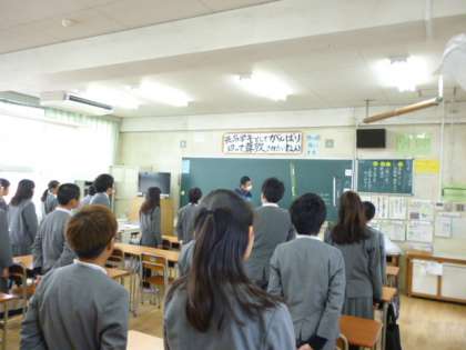 1月9日(火)は3学期始業式が行われました。雨で水溜りの運動場・講堂は工事中なので、放送での始業式となりました。それぞれのクラスで、2年生からの代表の決意や校長先生のお話を背筋をぴんと伸ばして一生懸命聴いている子どもたち、「3学期も頑張ろう!」との決意が感じられました。最後に校歌を歌って、終わりました。
