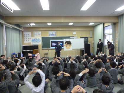 2月1日(木)の3時間目に、誘拐被害防止訓練がありました。平野警察署の方に来ていただき、誘拐されないために気をつけることについてお話していただきました。DVDを見たり、実際に大声を出して助けを求める練習をしたり、楽しく学ぶことができました。