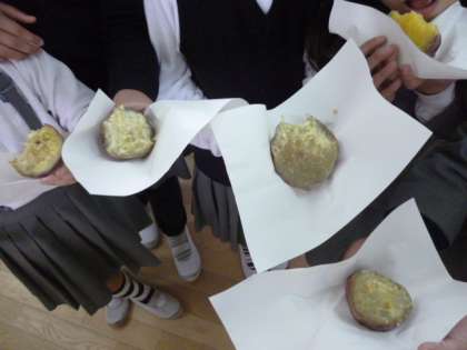 2月15日(木)、1・3時間目においもパーティーを実施しました。自分たちで大きなさつまいもを洗いました。さつまいもの大きさにとてもビックリしていました。さつまいもはじっくり蒸して、みんなでおいしく食べました!!