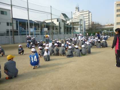2月22日(木)に児童集会がありました。先週と先々週の集会で作った6年生へのメッセージカードを渡す日です。1〜5年生の一人ひとりが心をこめて書いたメッセージカードを画用紙に貼って表紙に絵を描いて仕上げたものです。6年生に渡して、6年生からの一言をもらったあとは、みんなで「ふえおに」をしました。6年生全員が赤帽子でおにになり、みんな必死に逃げて楽しんでいました。