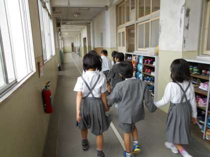 4月27日(金)2時間目に、2年生が1年生に学校を案内してまわりました。2年生は一つ一つの場所をていねいに説明することができました!1年生は教室の場所は分かったかな・・・?