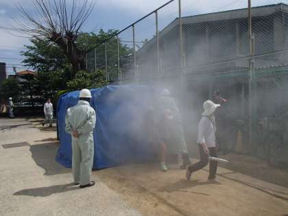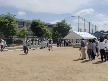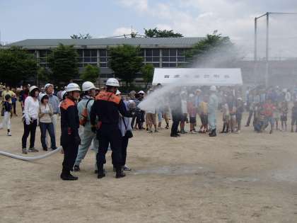 6月8日(日)、喜連北地区の避難防災訓練が地域の避難指定場所である喜連北小を舞台に行われまし下。町会、区役所、消防署、その他が一体となっての取り組みです。非常災害時には核となって行動される、地域防災リーダーの皆さま方のてきぱきとした指示・行動や各町会の皆さま方の整然とした行動が際立ちました。参加した喜連北小の子どもたちも、煙体験に起振車体験、簡易応急担架づくりに放水訓練と様々な体験をさせていただき、防災意識を高めるとても有意義な時間となりました。