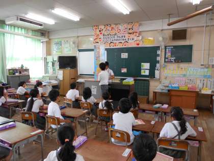 6月8日(金)図書委員会が、一年生の教室へ読み聞かせに行きました。100階建てシリーズの大型絵本で子どもたちには大人気の本です。委員会のお兄さんやお姉さんは、1年生にわかるようにゆっくりと丁寧に読んでいました。1年生の子どもたちも一生懸命に聞いていました。