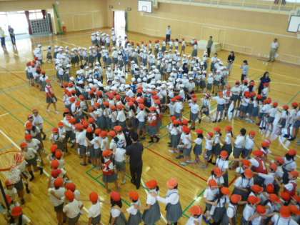 6月14日(木)朝の時間に、たてわり班集会がありました。各班ごとに集まり、じゃんけん列車を行いました。とても長い列車になり、子どもたちも楽しく取り組めていました。