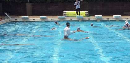 暑い日が続きますが、子どもたちはプールで楽しく水泳の練習をしています。