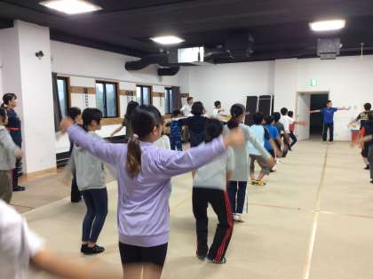 台風の影響で、雨風が少し激しくなってきました。多目的ホール(3階)で朝のつどいをしました。みんな元気です。