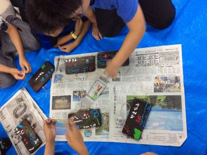 それぞれの林間学習での思い出を焼き板に描きました。