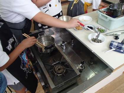 とっても上手な子もいて、普段の家庭でのお手伝いの様子も伝わってきます。しかし、どの子も、調理にかける手間ひまの多さに、お家の方や調理員さんの大変さを実感させられた楽しい勉強となったようです。