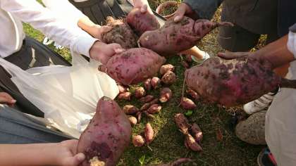 飼育緑化委員会のみんなで育てました。大きなサツマイモがたくさんできました。