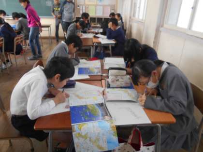 写真は社会、国語、理科の授業の様子です。