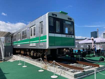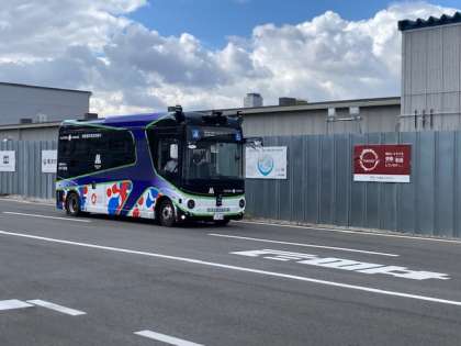 自動運転のバスと懐かしいデザインの地下鉄です。