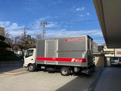 児童の登校前から搬入用トラックがやってきて、機材を運び入れていました。