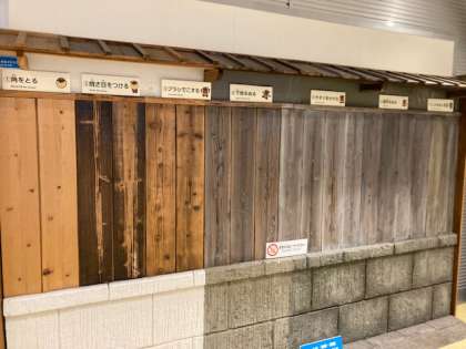 マンホールも看板も木に色をつけて仕上げていくそうです。