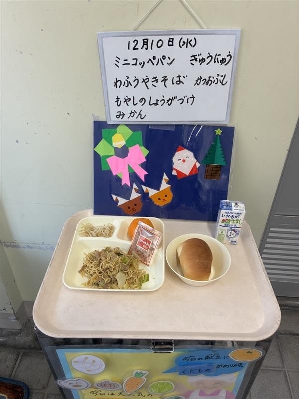 12月10日(水)ミニコッペパン牛乳和風焼きそばかつおぶしもやしのしょうがづけみ...