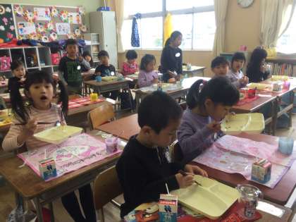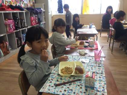 ニコニコ笑顔で、給食の時間を楽しんでくれていました。