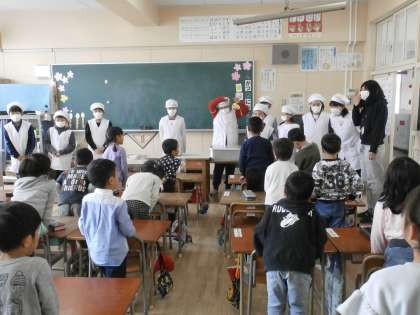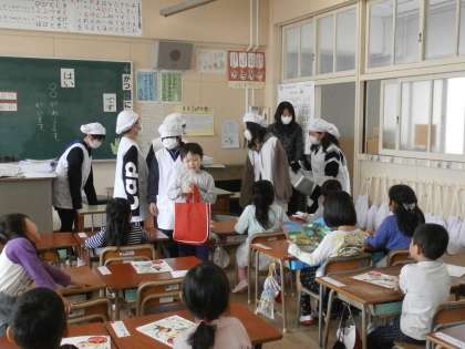 1年生の給食を運んだり、1年生の教室を掃除したりと、様々な場面で立派な姿が見られます。