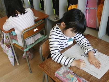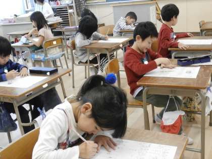 これまでに習った漢字を「とめ、はね、はらい」に注意しながら丁寧に書き、みんな最後まで頑張っていました。