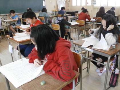 放課後、6年生が実施したテスト問題に全教員が挑戦しました。