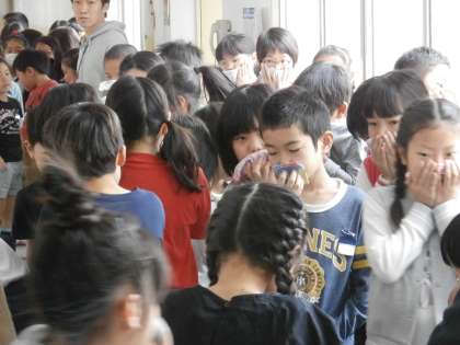 子どもたちは「お・は・し・も」の注意を守って、素早く安全に避難することができました。