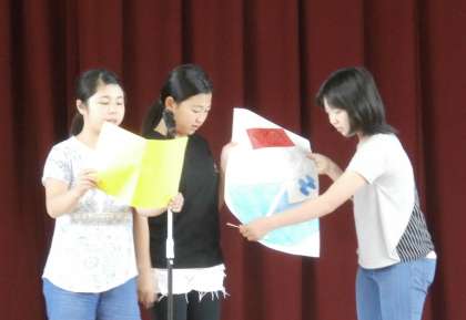 放送委員会は、講堂で朝会が行われる際、放送室でマイクの音量を調節したり、音楽を流したりします。舞台でのお知らせや発表がある時には、きちんと整列してしっかりと話を聞いています。
