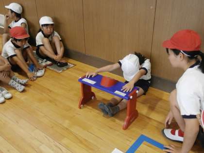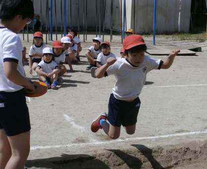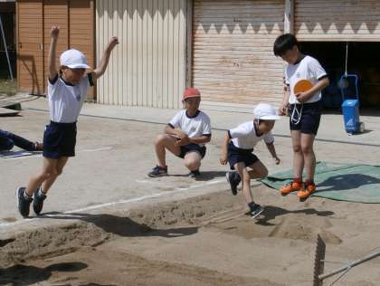 スポーツテスト(立ち幅跳び・長座体前屈)の様子です。