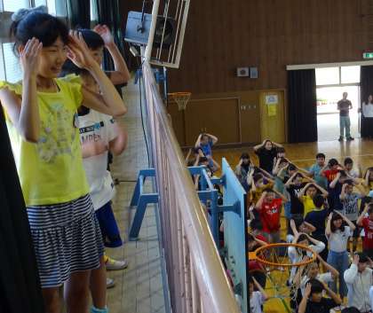 加美東小学校の英語朝会に、“KMHレンジャーズ”がやってくることがあります。