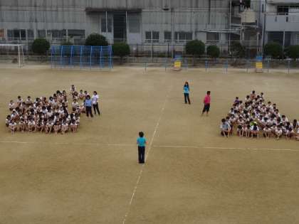 天候がいつ崩れてもおかしくない空模様にも関わらず、今日も一生懸命に運動会の練習に励みました。写真は5、6年生の組体操ですが、痛さ、辛さ、怖さと戦いながら、子ども達は本当によく頑張っています。