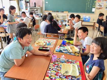 5年生の教室では、さくらんぼのお話とクイズをしました。
