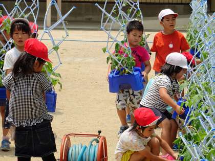 1年生の子どもたちは、毎日せっせと水をあげています。