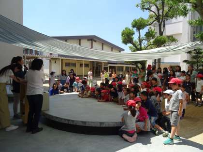 読み聞かせが終わると、中庭全体が大きな拍手に包まれました。